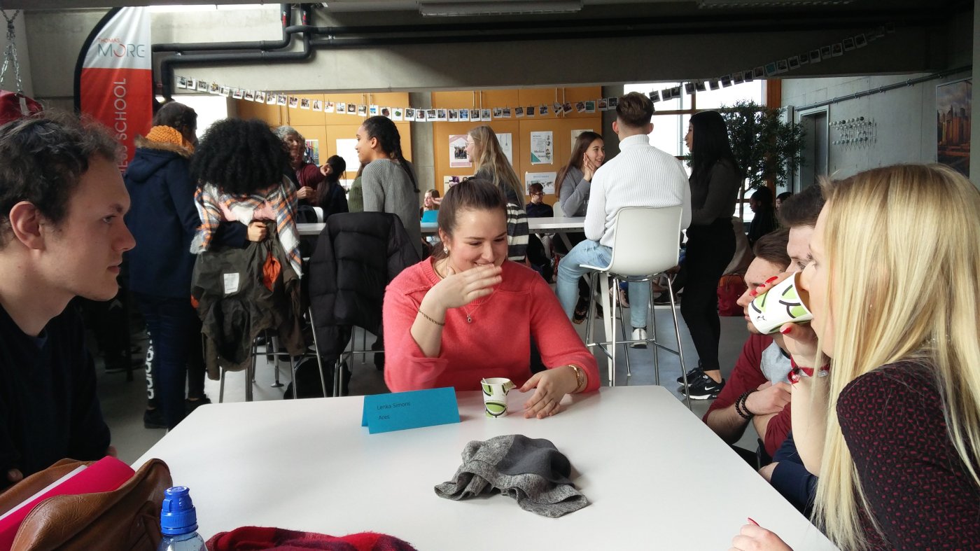 Woensdagochtend om 9u30. Yep, het is nog vroeg, maar de studenten 1OM en 2OM verzamelen in onze boardroom en er wordt druk gediscussieerd over de stages die de tweedejaars net achter de rug hebben. In het Frans dan nog. Want ja hoor, de 2OM-ers liepen de voorbije weken stage in een Franstalig bedrijf, meestal in Brussel of Luik.