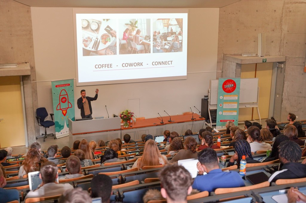 Het was al even aangekondigd – maar op 6 november ’19 was het eindelijk zover. We werden in de aula van campus de Vest ontvangen door Lorens Van de Velde en Regina Vuerinckx van SPARK. Zij legden uit dat SPARK een initiatief is van Thomas More in de regio Mechelen en Antwerpen om de ondernemerszin van studenten te stimuleren, te ontwikkelen en te ondersteunen.