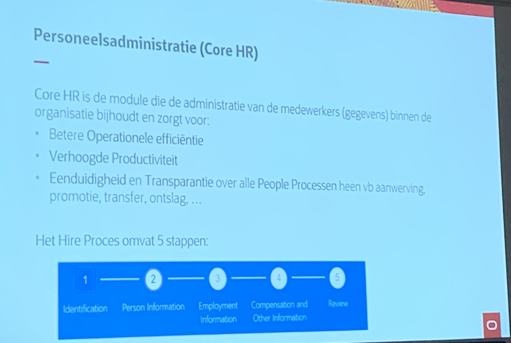 Als student in Office Management is het ons alvast duidelijk: gastcolleges en sprekers zijn een kans om verbinding te maken met het werkveld. Zo kregen we recent de kans in het vak HRM-Topics van HR-docent Ann Foubert in contact te komen met het e-HRM-systeem van de firma Oracle. Hun medewerker Elke Devinck kwam dit met veel plezier uitleggen.