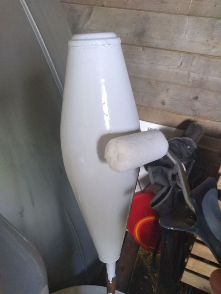 Daarna begon ik aan mijn “droomproject” door mijn kegels van een wit laagje verf te voorzien. Dat is echter sneller gezegd dan gedaan. Ik moest ze helemaal uit elkaar halen – zodat ik zeker niet op een onderdeel zou morsen of zelfs iets zou kapot maken.
