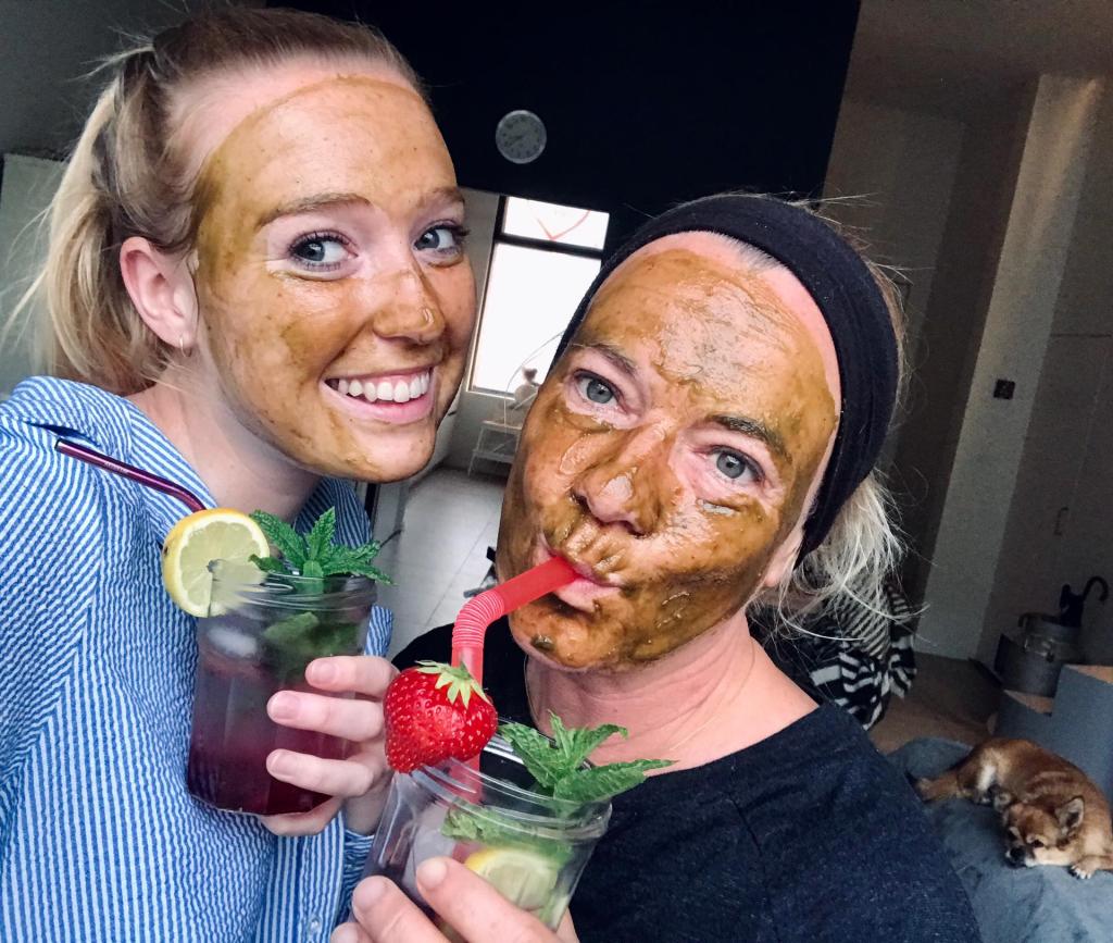“Goed in je vel” is niet enkel sporten … maar je ook goed verzorgen! Na een dagje vitamine D opdoen in de zon, scrubben we de huid, doden we de gratis mee-eters en leggen we een zelfgemaakt avocadomasker. We zijn tegen voedselverspilling dus deze te rijpe avocado’s krijgen zo toch nog een nuttige functie. Ik heb net lekker mocktails gemaakt van verse munt, geperste citroenen, bio aardbeiensiroop en water. De gin smaak droom ik erbij en in mijn moeders fantasie is Johnny Depp de ober.