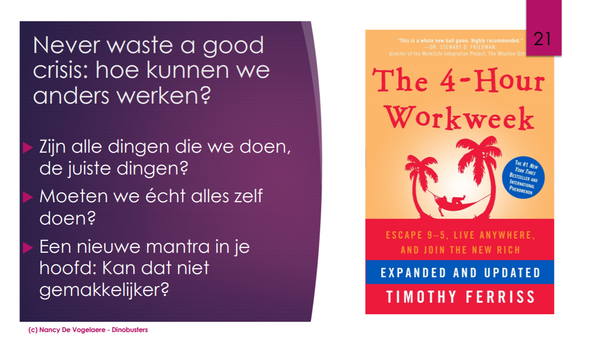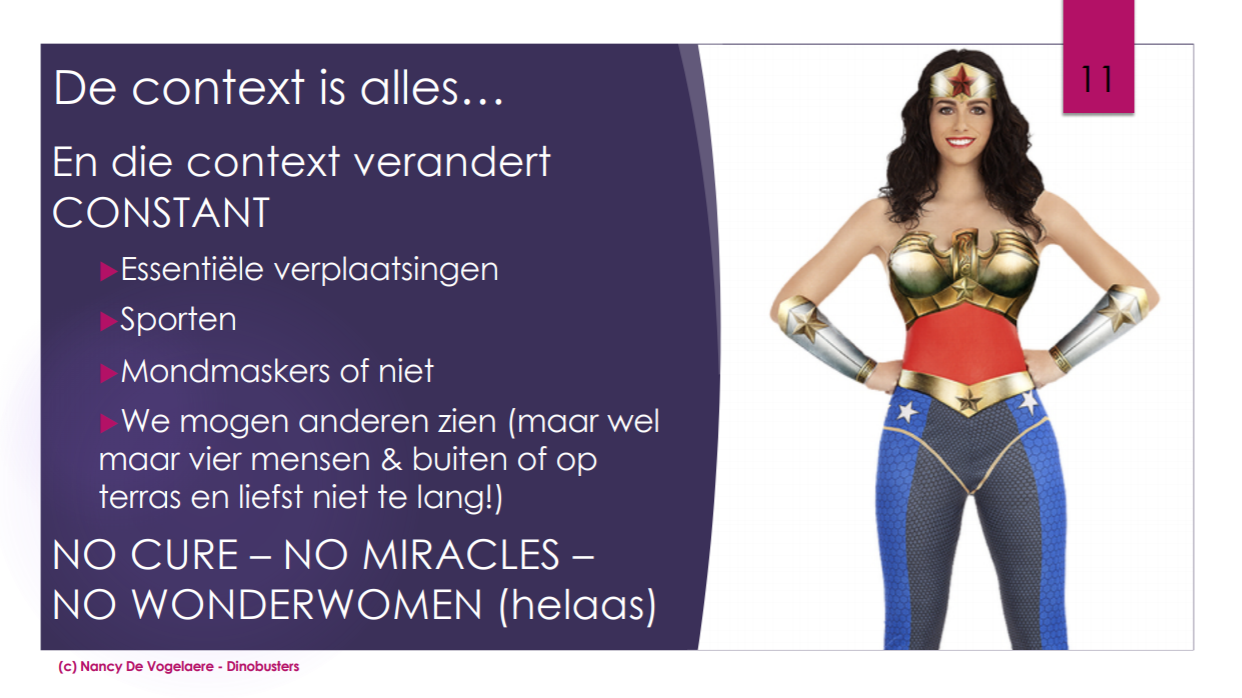 We dwalen af, een vrijheid waar tijdens dit interactieve seminarie overigens ook genoeg ruimte voor was. Context, daar waren we gebleven. Het is belangrijk om je te focussen op zaken die we kunnen controleren of beïnvloeden. Dit kunnen we opdelen in 3 cirkels: