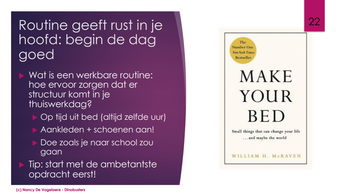 Routine brengt rust in je hoofd, zorg voor eenzelfde structuur iedere dag:
