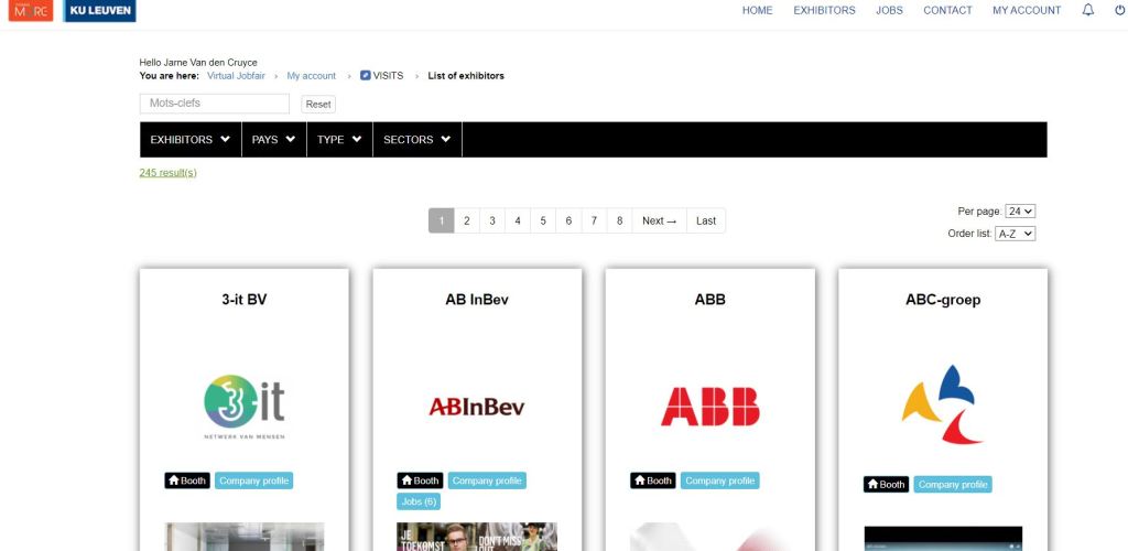 Vooraleer de virtuele jobbeurs van start ging, kregen we de opdracht om een profiel aan te maken op hun website. Om ervoor te zorgen dat bedrijven en recruiters een duidelijk overzicht krijgen van de kandidaten, werd er gevraagd om onze CV’s en persoonlijke gegevens op te laden. Wanneer bedrijven potentie zien in een student, kunnen zij hen op elk moment contacteren. Dankzij de bedrijvengids kregen we niet alleen een overzicht van alle bedrijven, maar konden we ook op basis van onze interesses deze bedrijven zélf contacteren! Cool, toch?! 😊