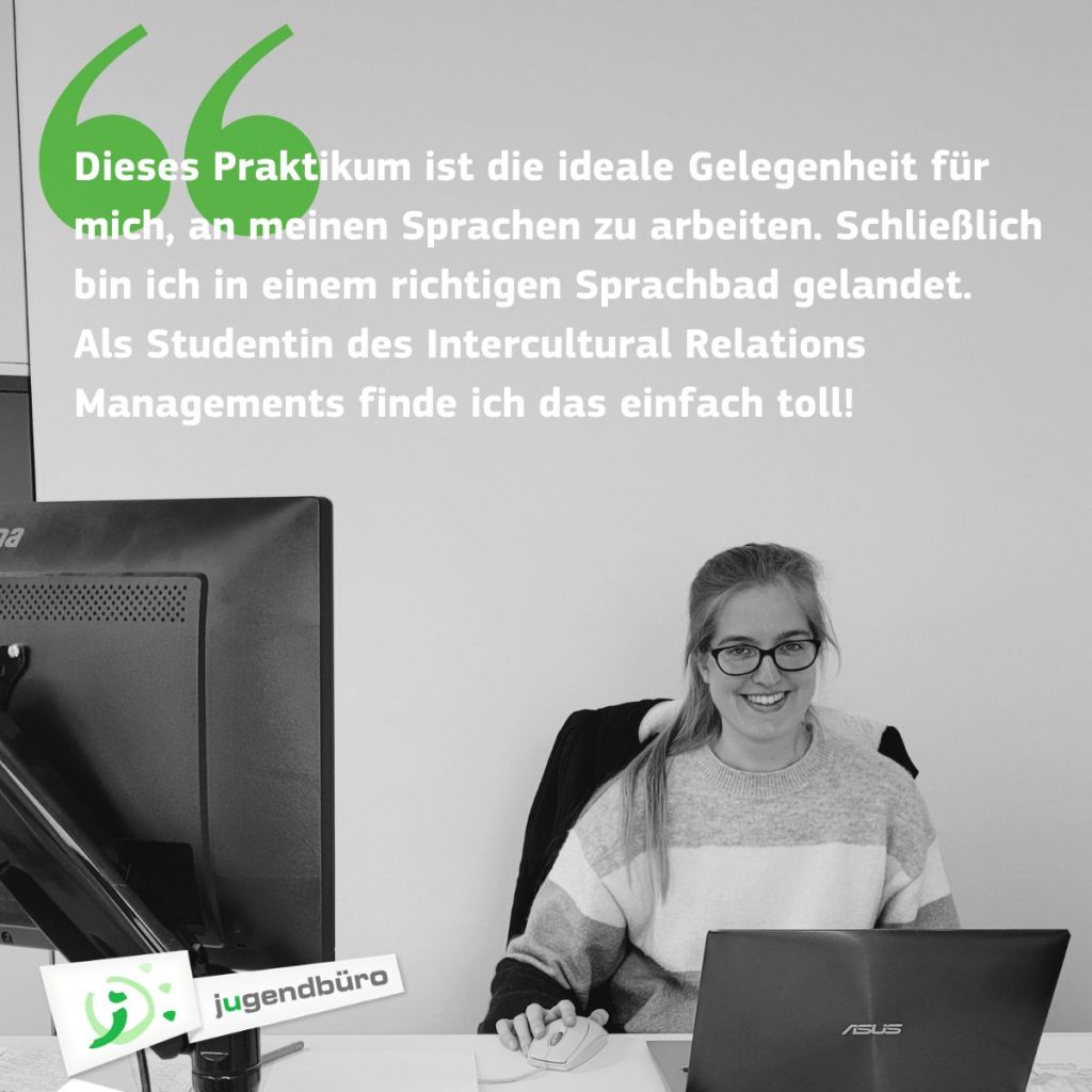 āDeze stage is voor mij de ideale gelegenheid om te werken aan mijn talen. Ik kwam namelijk terecht in een echt taalbad. Als IRM-studente vind ik dit gewoon geweldig!ā