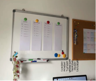 De onlinelessen hebben mij wel geleerd om zelfstandig te zijn. Ik moest opeens mijn eigen agenda invullen en zien dat op het einde van de week alle lessen bekeken waren. Hiervoor was ik veel chaotischer en hield ik mijn lessen en taken veel minder goed bij. Dit zag ik zeker ook in mijn werkruimte. Vóór corona liet ik alles rondslingeren en kon ik vaak mijn cursussen niet meer terugvinden. Aangezien ik opeens veel meer tijd zou spenderen aan mijn bureau, heb ik er wel voor gezorgd dat deze altijd opgeruimd en netjes was.