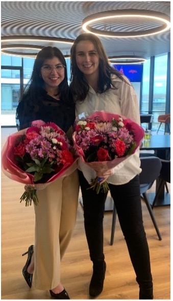 Met heel de klas hebben we Mélanie en Lina, onze consultants, nog in de bloemetjes gezet. We hadden dit nooit mogelijk kunnen maken zonder hen.