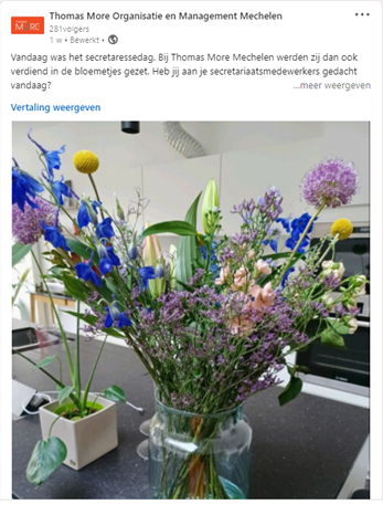 LinkedIn is een vaak vergeten sociaal kanaal, maar dit maakt ons zeker niet minder belangrijk. Het is een platform gericht op professionals en wordt vooral gebruikt om online te netwerken. Via LinkedIn kunnen we de opleiding in contact brengen met bedrijven, andere opleidingen en andere geïnteresseerde partijen. Wij posten wekelijks één à twee posts. Dit kan een uitstap zijn, een leuke boodschap of werkervaring. Naast ons eigen posts delen wij content van onze collega’s, indien dit past binnen het medium van LinkedIn.