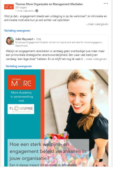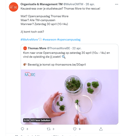 Als laatste proberen we via Twitter ook de andere kanalen te promoten door hun posts te delen op ons platform.