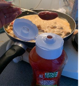 - Voeg de ketchup toe.