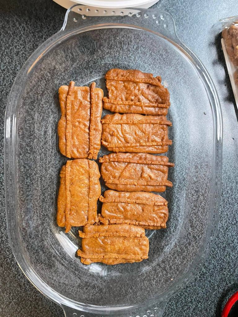 Stap 6: Dompel de speculoos in de koffie en leg deze op de bodem van een schaal. Voeg vervolgens mascarpone crème toe zodat de speculoos bedekt is.