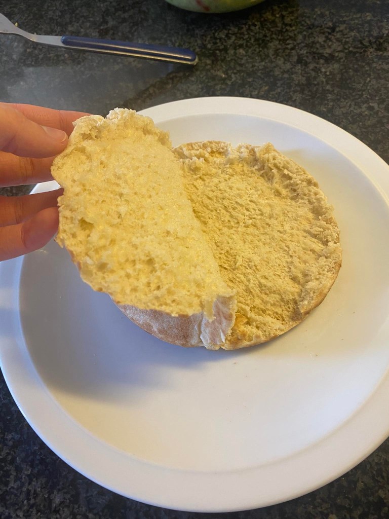 Stap 12: Haal de pitabroodjes uit de oven of broodrooster en snijd ze open