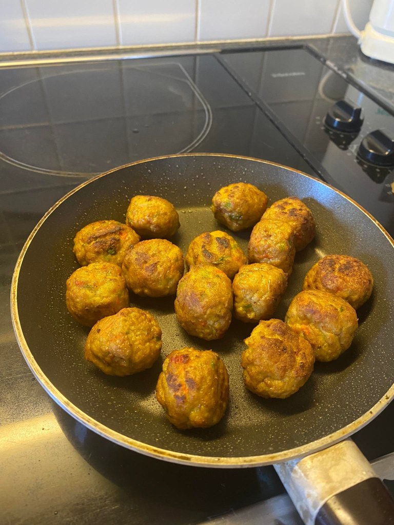 Stap 10: Voeg vervolgens de groenteballetjes toe in de braadpan en bak deze tot ze een bruine kleur krijgen aan de buitenkant