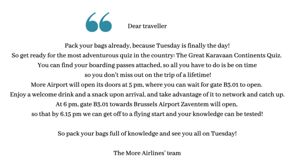 Maar, genoeg over mij. Vandaag neem ik jullie mee in mijn organisatieverhaal van de Grote Karavaan Continentenquiz.