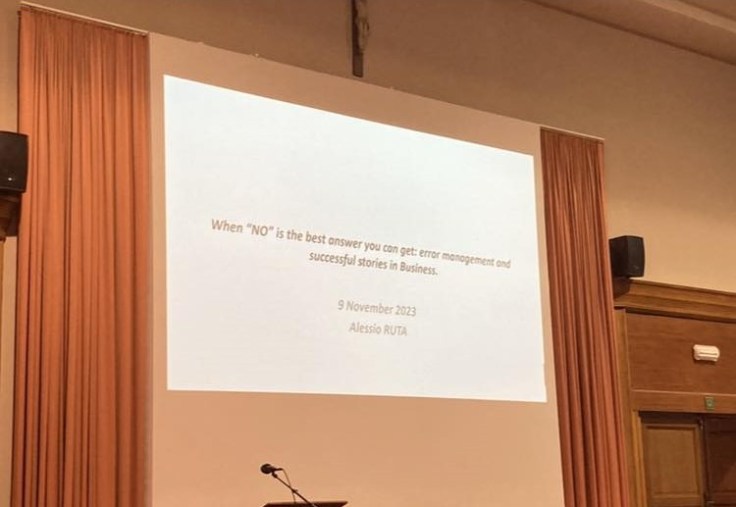 De gastspreker van dit seminarie was Alessio Ruta. Hij heeft al 11 jaar ervaring in de eventmanagement sector. De laatste 6 jaar werkt hij ook in het onderwijs aan de business school in Brussel. Hij gaf dit seminarie ‘om falen te vieren’.