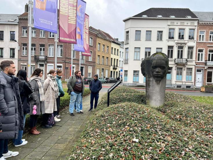 Het semester liep af en dus was het tijd voor een uitstap. De studenten van het keuzevak Regional focus, Latijns-Amerika (gegeven door Walter Andino Midence en Almaz Z. Sullivan) trokken erop uit. In teken van de 4 lessen die ze kregen, werden ze rondgeleid in Mechelen langs standbeelden en gingen ze naar een markt. De markt was in een gebouw en er werden allemaal spullen verkocht van verschillende landen in Latijns-Amerika. Tijdens hun wandeling gaan ze dus ook langs een aantal standbeelden die iets te maken hebben met de kolonisatie. Deze ervaring bood de studenten een praktische en culturele aanvulling van het vak.