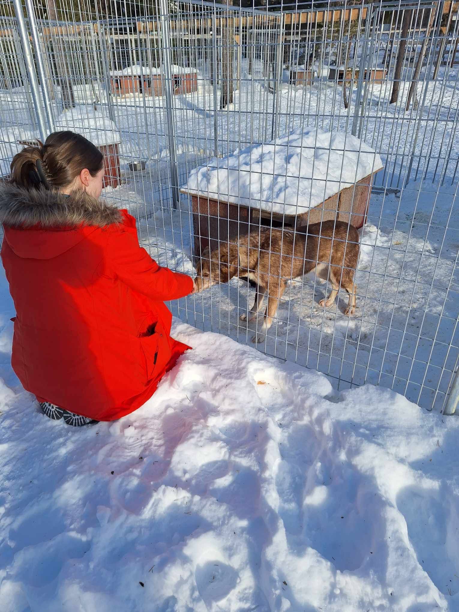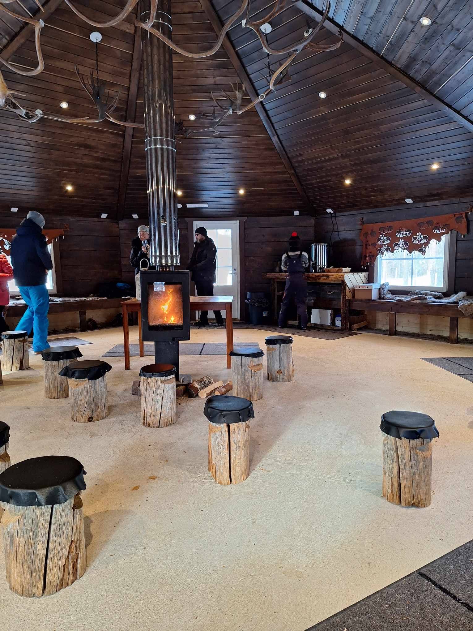We begonnen met de sledehonden, die al druk bezig waren met mensen voort te trekken toen we aankwamen. Na onze eigen sledetocht mochten we de honden aaien en leerden we hun namen en leeftijden kennen. Vervolgens kregen we meer informatie over de werking van de sledeboerderij in een blokhut. Hier werden we weer getrakteerd op warm vruchtensap en koekjes.