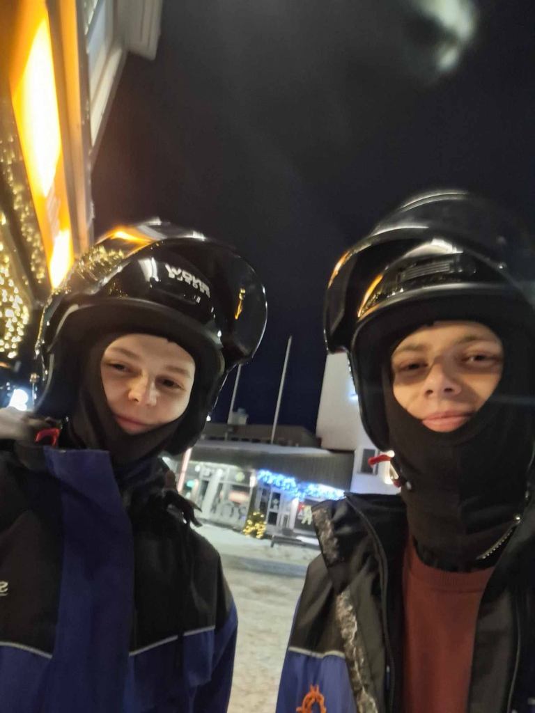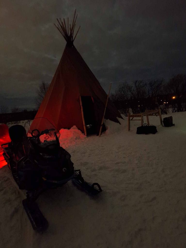 Zoals hierboven vermeld, gebruiken de sneeuwscooters de rivier als hun rijbaan. Aangezien mijn vriend en ik beiden motorrijden, moesten we deze activiteit van onze bucketlist afstrepen. Ondanks bevroren tenen en vingers, en mijn bijna-botsing met enkele bomen, was het een geweldige ervaring. Waarvan ik vermoed dat we het zeker opnieuw zullen doen als we de kans krijgen. Het excursiebedrijf had zelfs traditionele kampvuurworstjes en warm vruchtensap. Het sap is meestal een mix van bessen, appel en druiven sap voorbereid voor de excursiegroep.