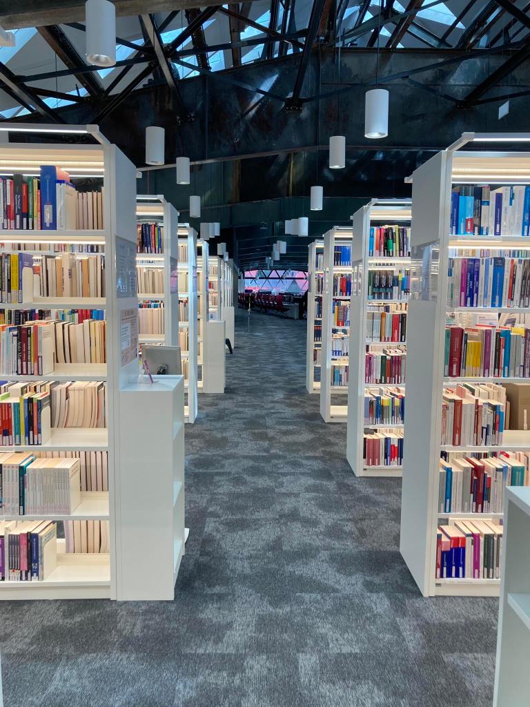 In Belval bezochten we het leercentrum. Op deze plaats kan je in stilte komen werken. Het is een groot gebouw met verschillende verdiepingen. Elke verdieping heeft een andere kleur en kan je ook iets anders doen. Je hebt een verdieping waar je muisstil moet zijn, maar je hebt ook een verdieping waar je aan groepswerken kan werken. Er zijn ruimtes waar je kan relaxen, of zelfs slapen, en er zijn plaatsen waar je je helemaal kan afzonderen van afleiding. Je kan er boeken lenen, zoals een bib, en ook laptops.