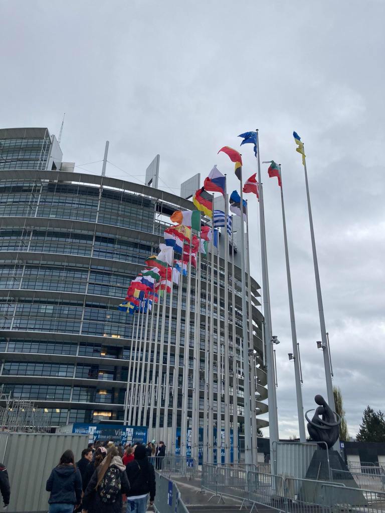 Op onze laatste dag hebben we nog het Europees Parlement bezocht. Hier zijn we last-minute toch met de bus heen gereden. Origineel stond er op de planning om dit met een fietstocht te doen, maar dat liet het weer jammer genoeg niet toe.