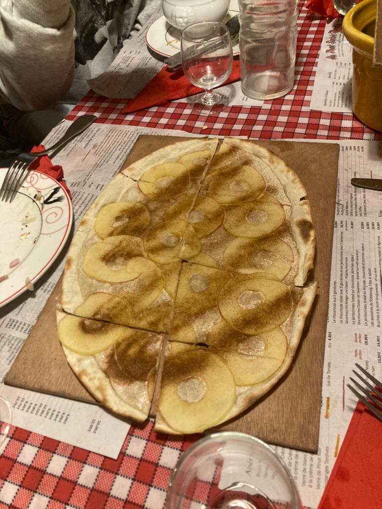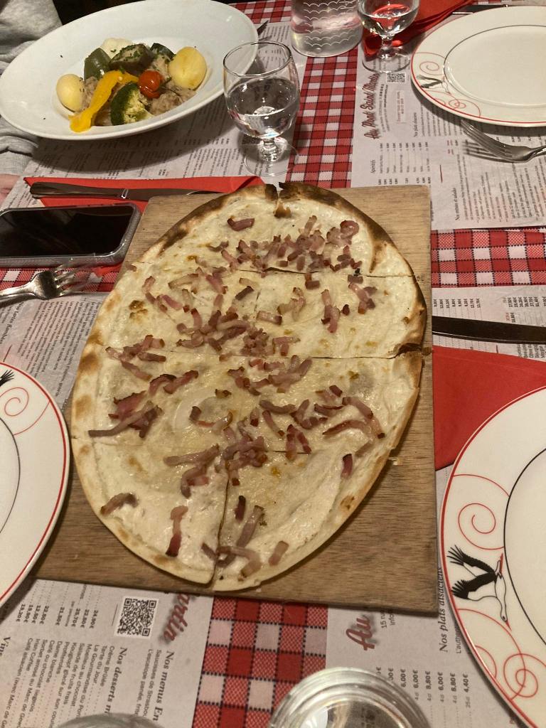 ‘S avonds zijn we met z’n allen in een restaurant gaan eten in La Petite France. Hier konden we genieten van een typisch geerecht. Dit was flammkuchen, ook wel gekend als tarte flambée. Voor sommigen onder ons een ware delicatesse. Andere waren minder bekoord… .