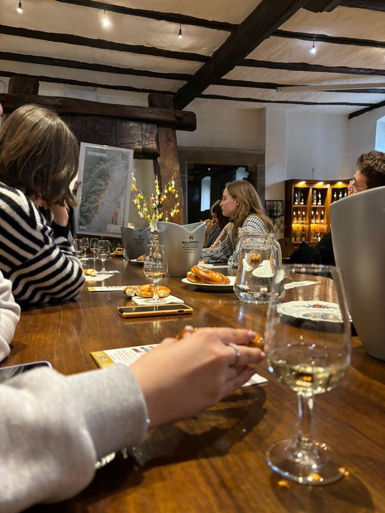 Aangekomen in Obernai, na wat serieuze manoeuvres van de bus, deden we nog een korte wandeling om op locatie aan te komen. Hier werden de wijndrinkers ondergedompeld in het proces van hoe de wijn gemaakt wordt en mochten ze proeven van verschillende wijnen. Achteraf kon je, voor wie wou, jouw favoriete wijn kopen.