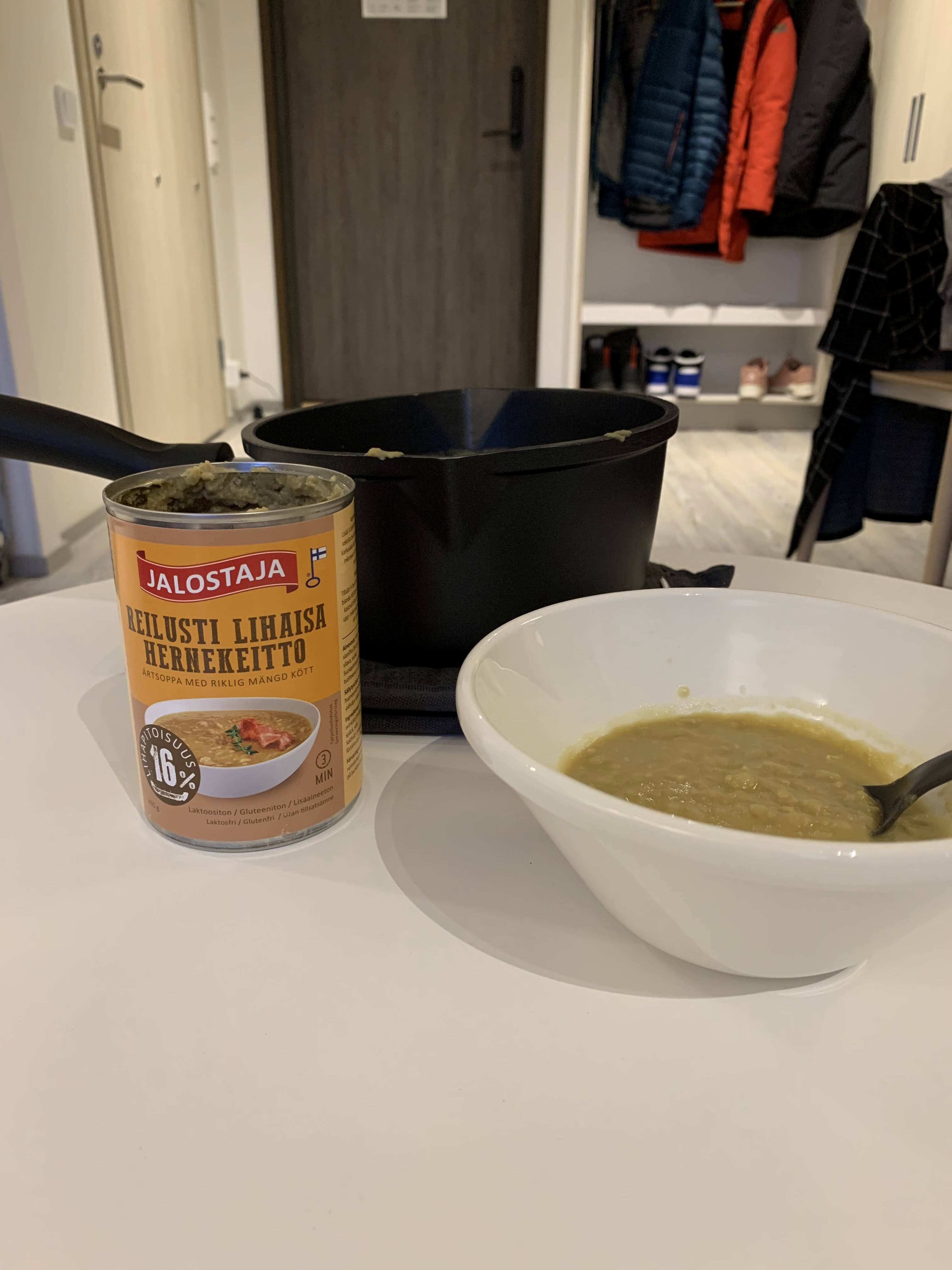 Hernekeitto, oftewel erwtensoep, is een klassiek Fins gerecht dat vaak op donderdag wordt geserveerd in scholen en bedrijfskantines. Hoewel het traditioneel als een herfstgerecht wordt beschouwd, kan je het ook op andere momenten eten. Bijvoorbeeld tijdens sportevenementen of op marktjes.