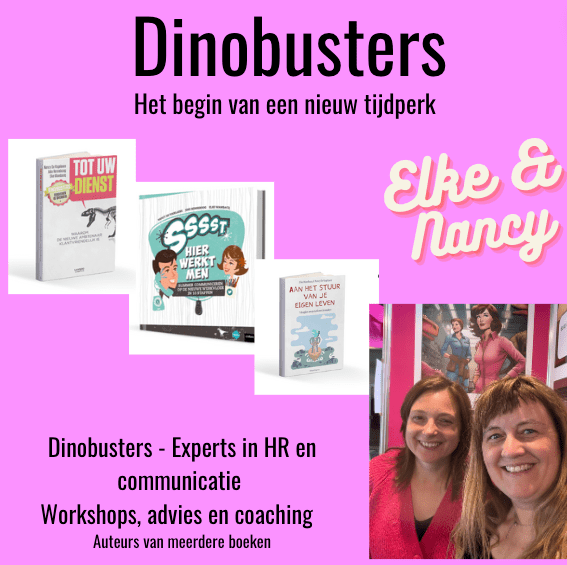 Naast school heeft Nancy haar eigen bedrijf samen met haar collega Elke Wambacq. Hun bedrijf Dinobusters ‘verjaagt dino’s’ – of oude ideeën die niet aangepast zijn aan de verwachtingen van de buitenwereld, de klanten, de eigen medewerkers. Samen zijn van alle markten thuis. Binnen HR, communicatie en marketing kan je ze terugvinden voor teamcoachings, opleidingen, workshops en tekenverslagen. Ze houden van trainingen geven rond onder andere verbindend communiceren, (zelf)leiderschap… Samen met Elke schreef Nancy intussen al 3 boeken en broedt altijd op nieuwe ideeën.