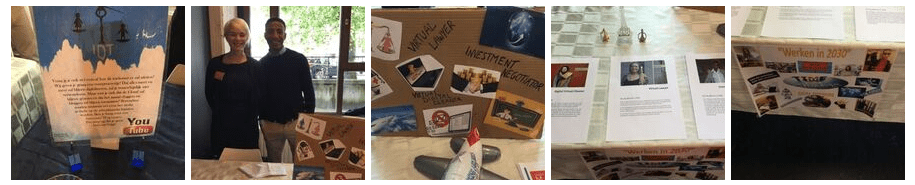 Studenten werkten per groep verschillende thema’s uit over werken in 2030 en zorgden voor bijhorende inkleding.